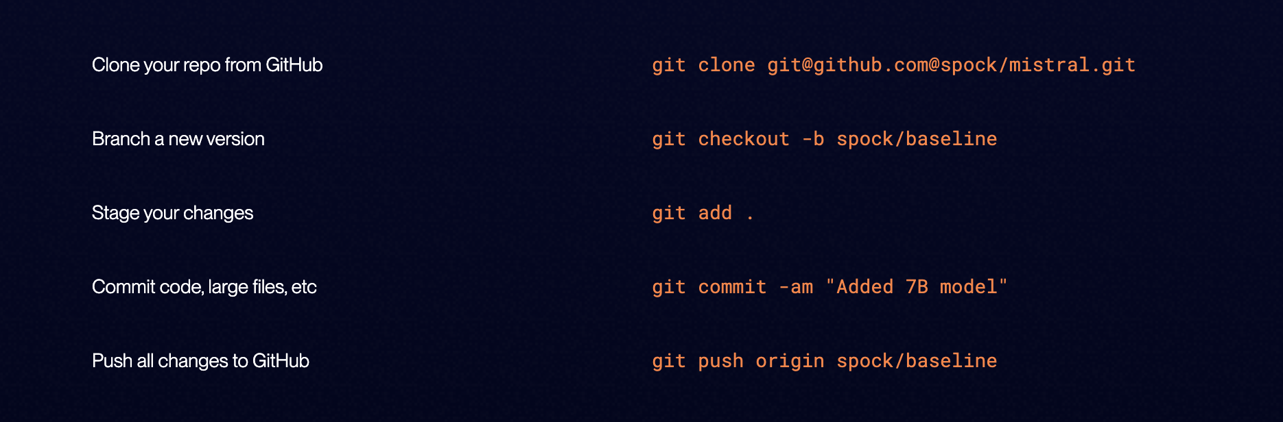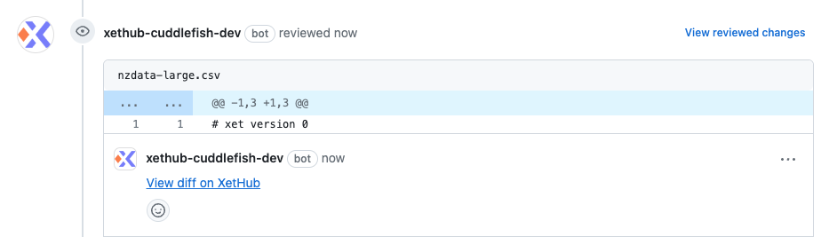Alternatively, you can continue hosting your Git repos on GitHub and instead seamlessly push large files to our servers instead. Unlike DVC or Git LFS (which push hashes of large files to GitHub), our GitHub app will then inject useful context into these large files in commits and pull requests.