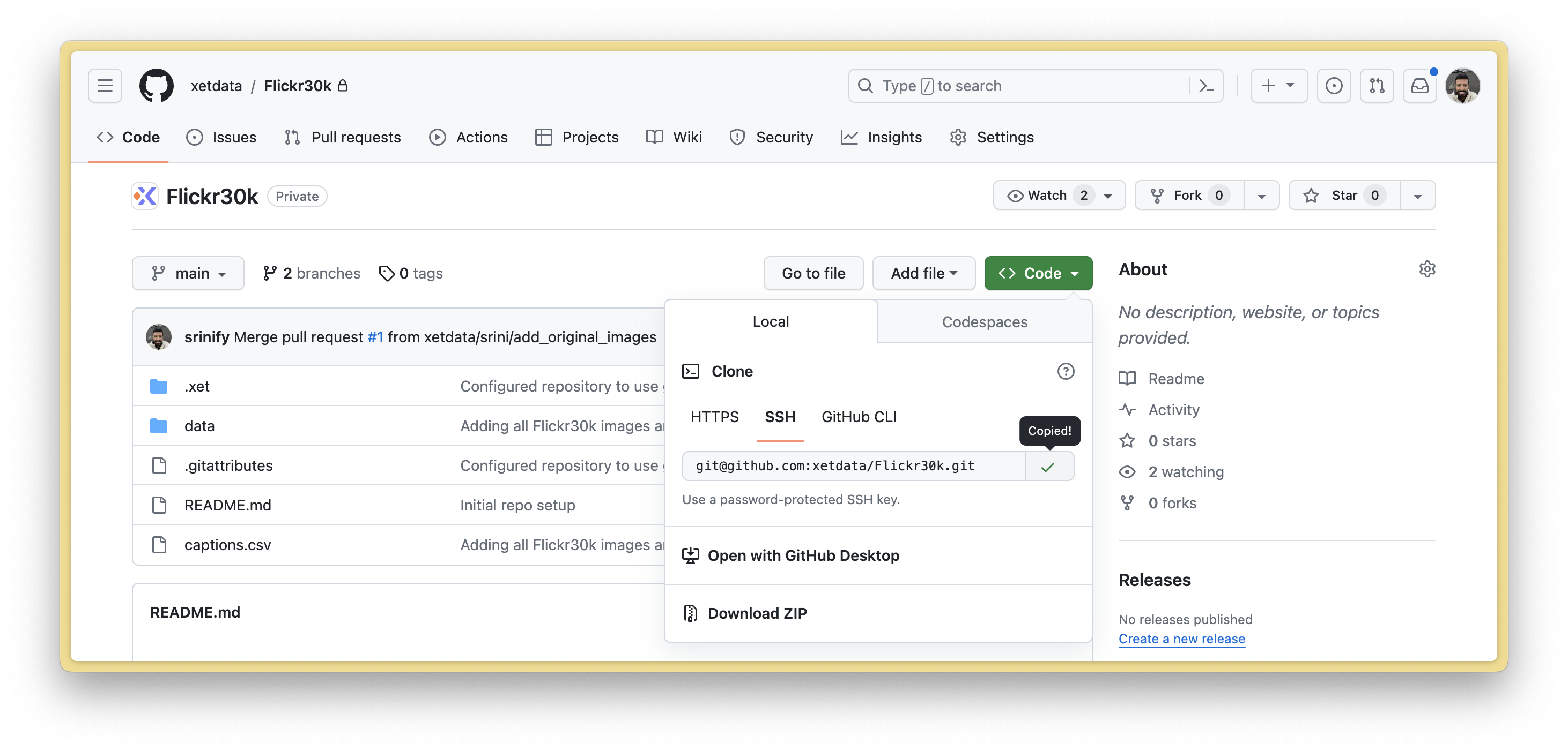 If you have a passphrase for your SSH key, note that you may be asked 4 times for the password. This is because the Git-Xet client needs to make multiple calls to GitHub and our servers to download your code and data. We recommend using a password keychain so this password is only asked once.