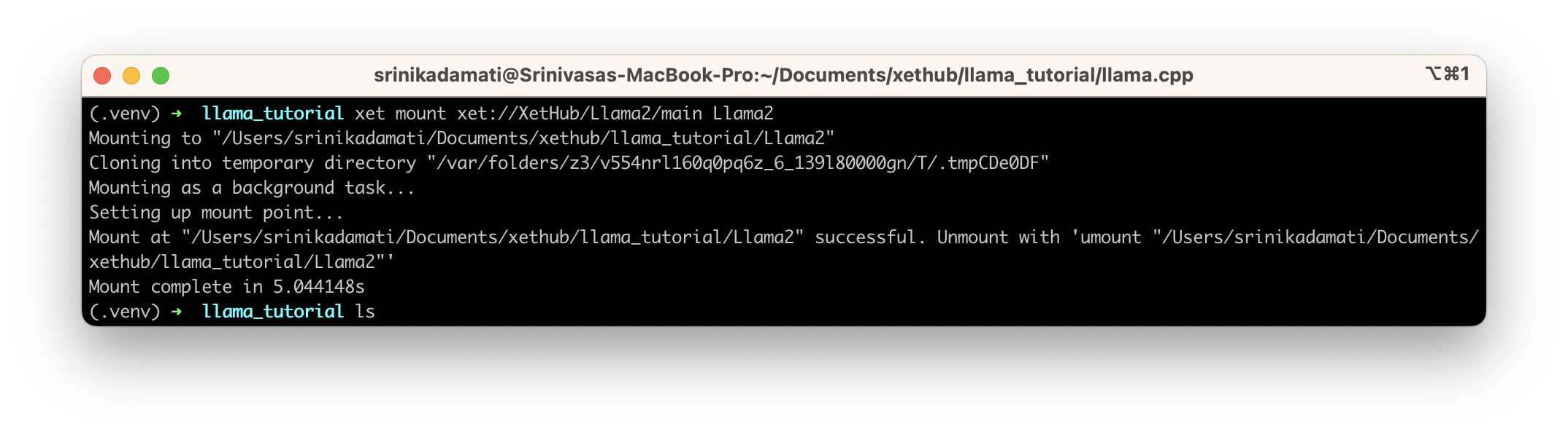 3. Mounting Llama 2 from XetHub in ~5 Seconds