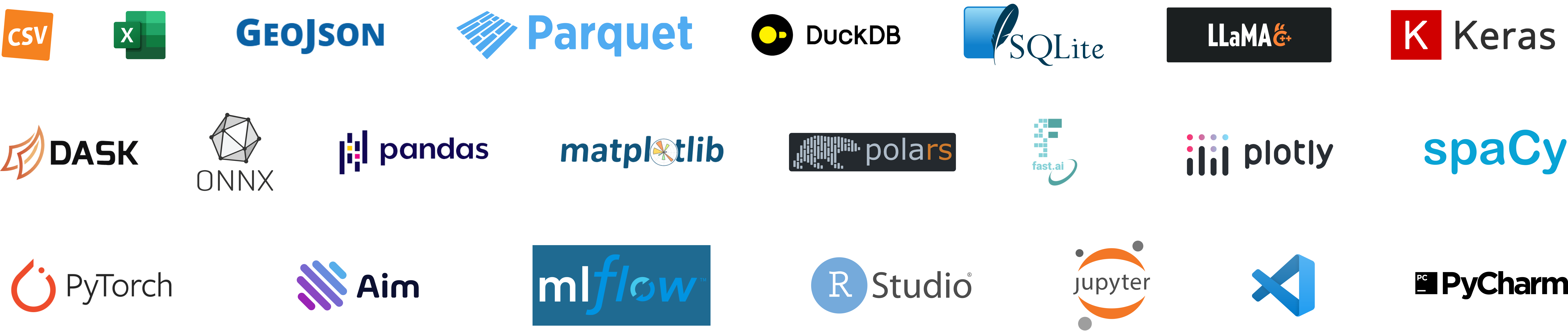 Keep your existing file formats, libraries, ML frameworks, and IDEs.