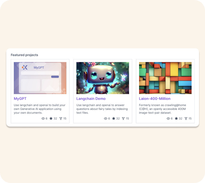 Duplicate an existing project to easily personalize, deploy, and share your own creations. Leverage LLMs and foundation models without the operations overhead.